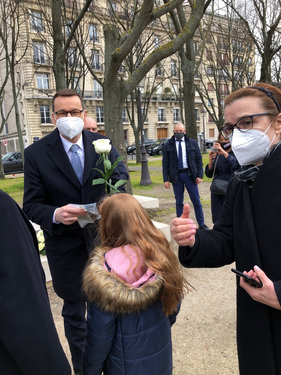 Mateusz Morawiecki został przywitany we Francji przez Klub Gazety Polskiej w Paryżu. Jego przewodniczący Andrzej Woda wręczył szefowi rządu maseczkę z logo miejscowego Klubu „GP'”. Premier otrzymał także kwiatka od polskiej społeczności w stolicy Francji. – Bardzo miły początek wizyty, nie spodziewałem się – skomentował na Facebooku.