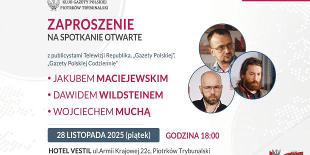 Klub „Gazety Polskiej” Piotrków Trybunalski zaprasza na spotkanie otwarte z publicystami Telewizji Republika, „Gazety Polskiej”, „Gazety Polskiej Codziennie”