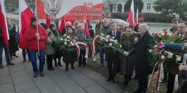 Klubowicze z Piotrkowa Trybunalskiego wraz z Antonim Macierewiczem uczcili pamięć bohaterów, składając kwiaty pod pomnikiem Żołnierzy wyklętych.