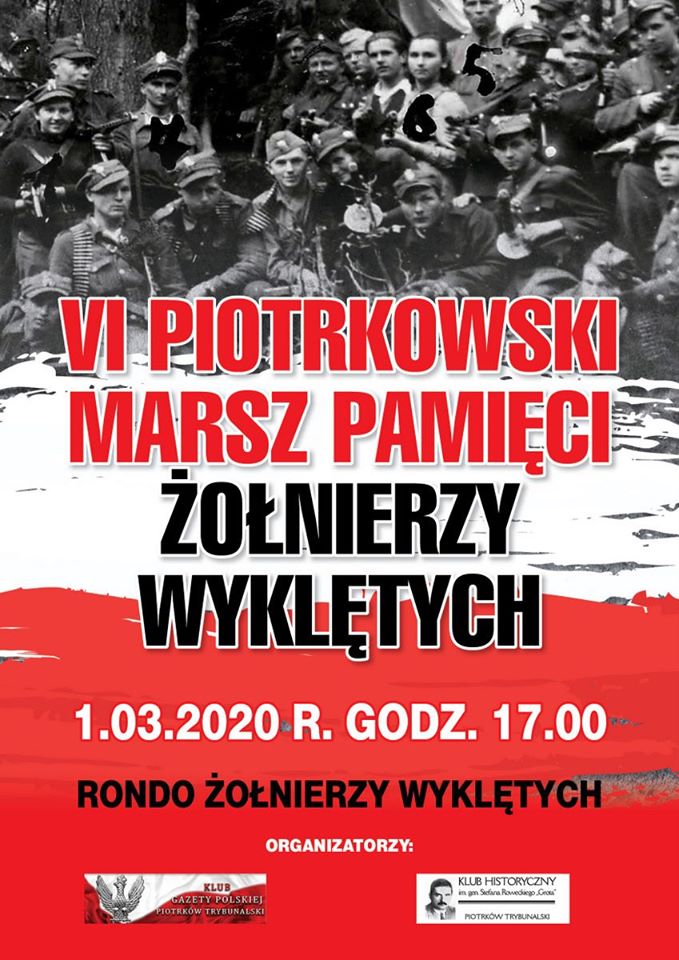 Piotrków Trybunalski: Zaproszenie na VI Piotrkowski Marsz Pamięci Żołnierzy Wyklętych. 1 marca godz. 17:00 Nie może Was zabraknąć! 1.03.2020 r. godz. 17.00 Rondo Żołnierzy Wyklętych, Piotrków Trybunalski. Bądźmy razem! oddajmy hołd Tym, którzy swoje życie oddali dla niepodległości. Klub Gazety Polskiej Piotrków Trybunalski lut 25, 2020 Kluby GP Piotrków Trybunalski Tagged Piotrków Trybunalski Wstecz Żakowski chciał pracować w… „Gazecie Polskiej”? Sakiewicz: Mógł zadzwonić, rozważyłbym Dalej List abp. Marka Jędraszewskiego do Klubów „GP”