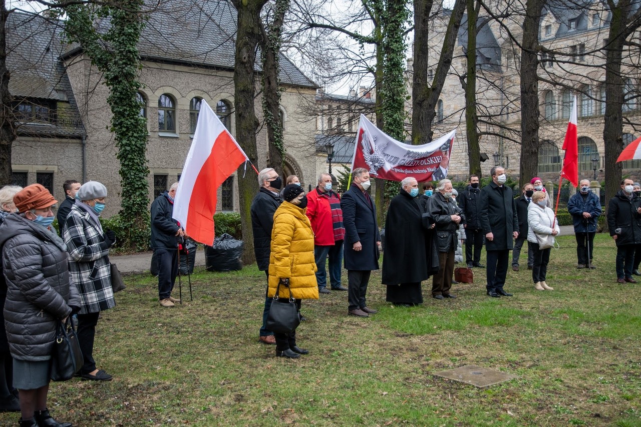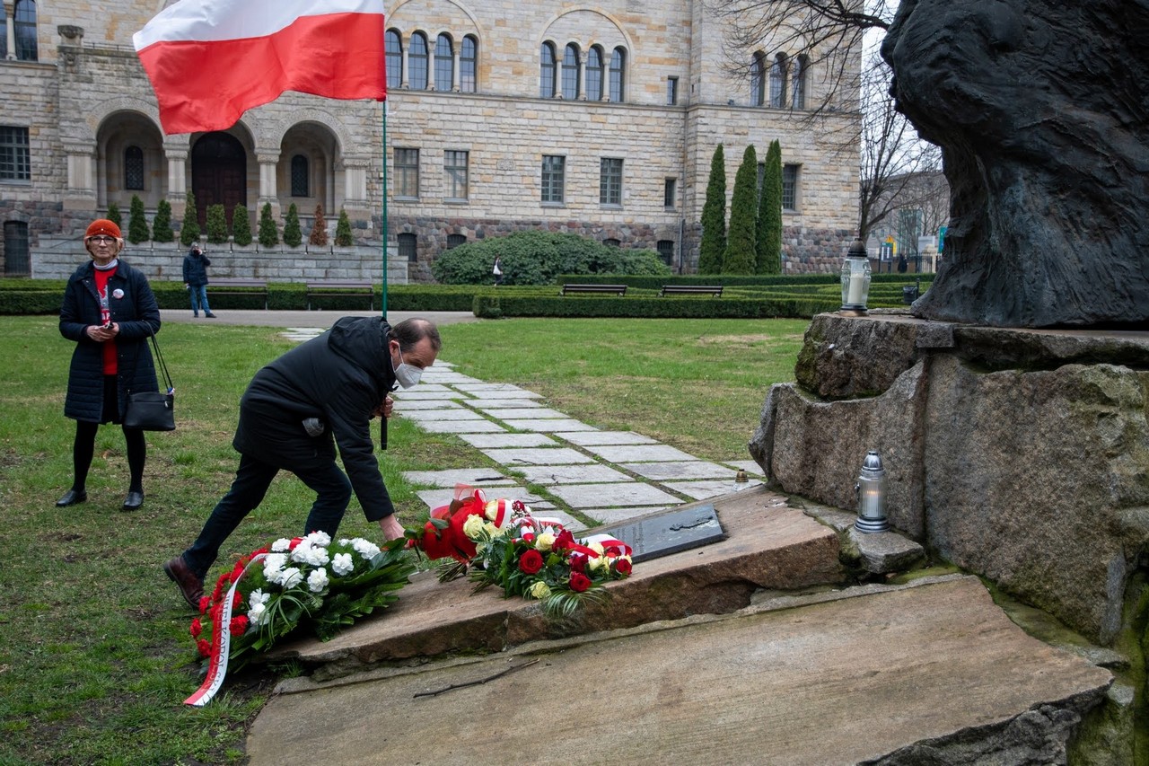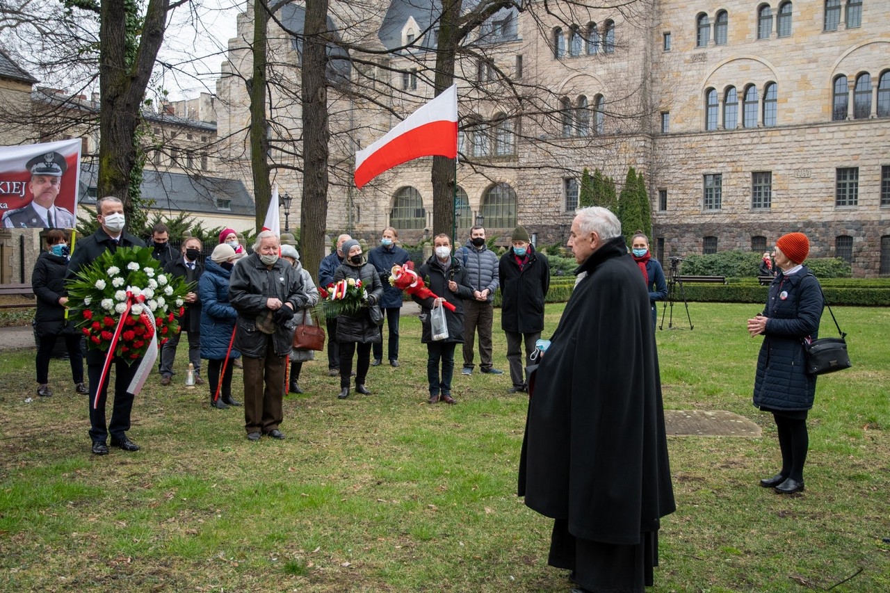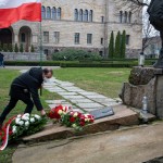 Po Mszy św. jej uczestnicy udali się pod pomnik Ofiar Katynia w Poznaniu, tak mocno związany z tą tragiczną rocznicą, gdzie po krótkiej modlitwie, którą poprowadził ks. Tadeusz Magas zostały złożone wieńce pod tablicą upamiętniającą katastrofę smoleńska przytwierdzoną do tego pomnika. Po odśpiewaniu Roty uroczystość została zakończona, a jej uczestnicy z coraz większą niecierpliwością oczekują na oficjalne podanie prawdziwej udokumentowanej przyczyny i wskazanie winnych zaniedbań tego wypadku lotniczego.