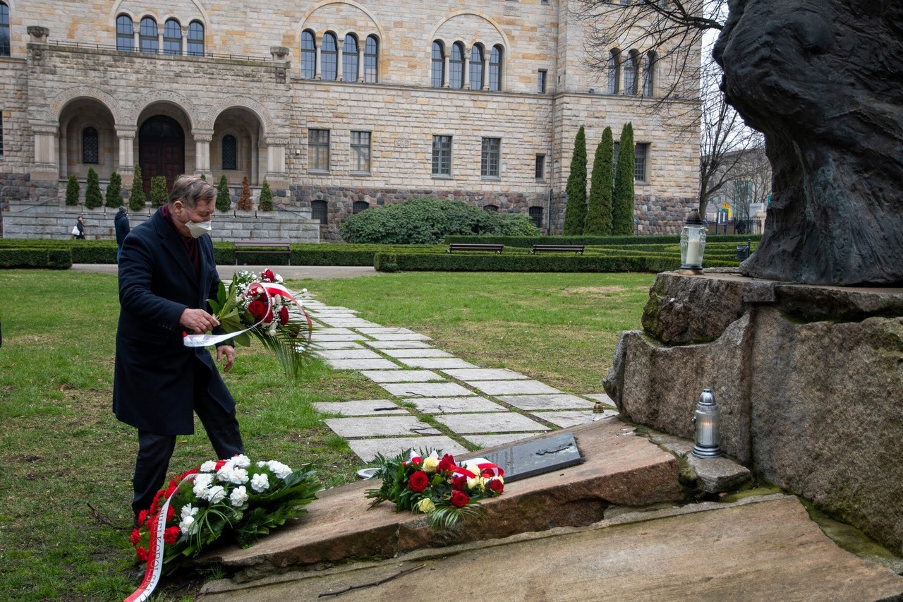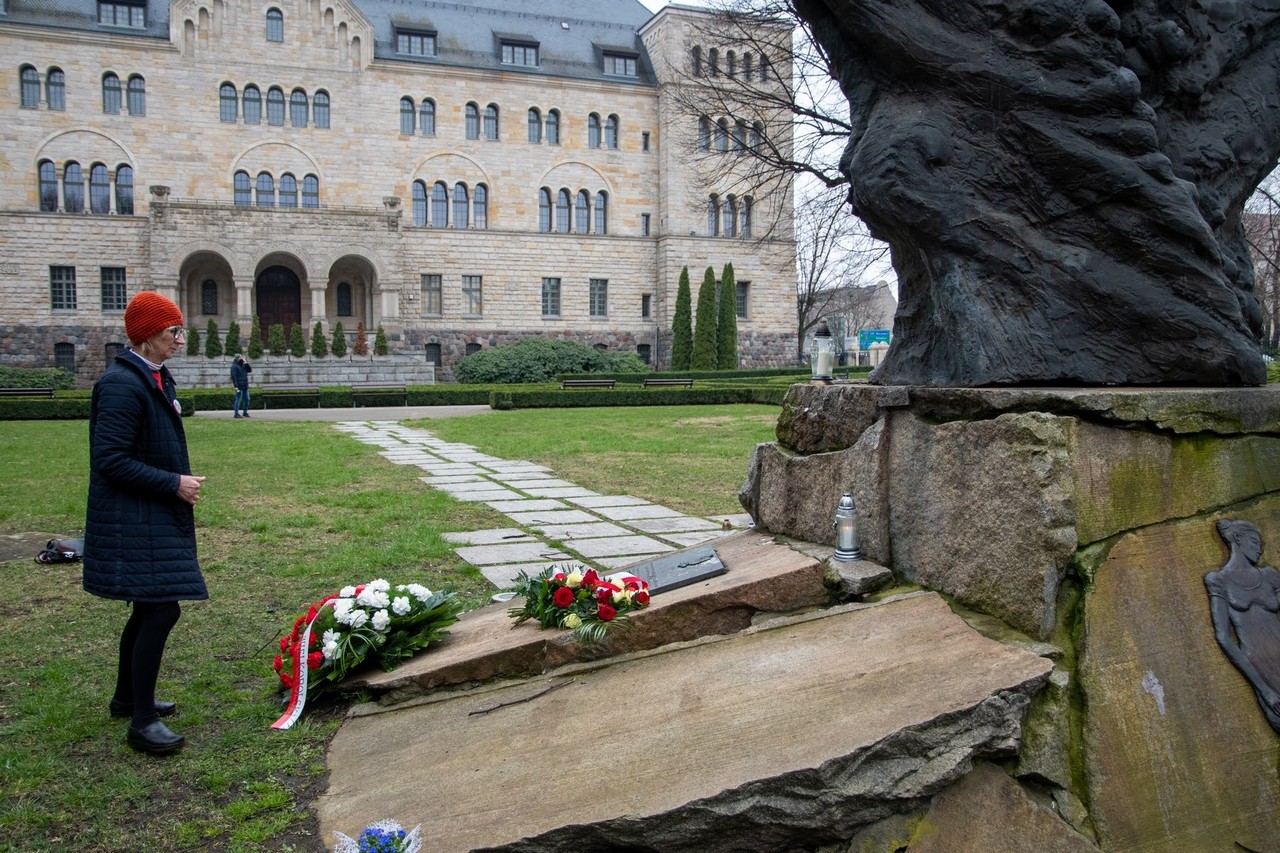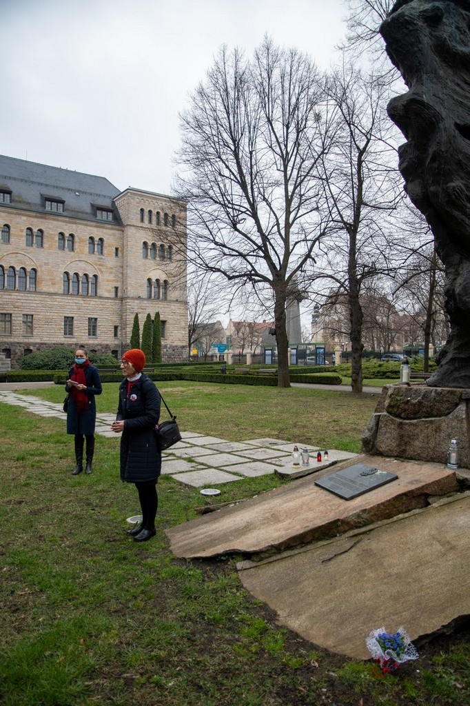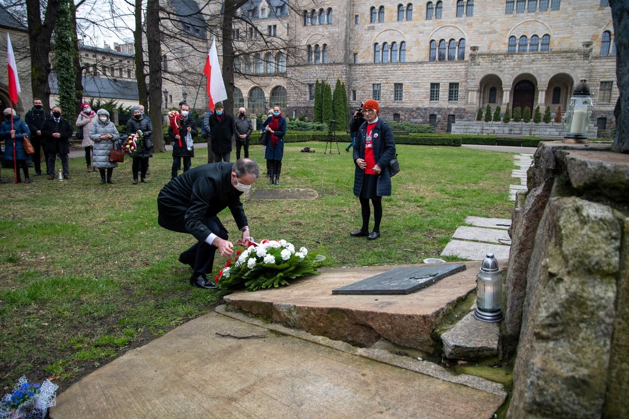 Po Mszy św. jej uczestnicy udali się pod pomnik Ofiar Katynia w Poznaniu, tak mocno związany z tą tragiczną rocznicą, gdzie po krótkiej modlitwie, którą poprowadził ks. Tadeusz Magas zostały złożone wieńce pod tablicą upamiętniającą katastrofę smoleńska przytwierdzoną do tego pomnika. Po odśpiewaniu Roty uroczystość została zakończona, a jej uczestnicy z coraz większą niecierpliwością oczekują na oficjalne podanie prawdziwej udokumentowanej przyczyny i wskazanie winnych zaniedbań tego wypadku lotniczego.
