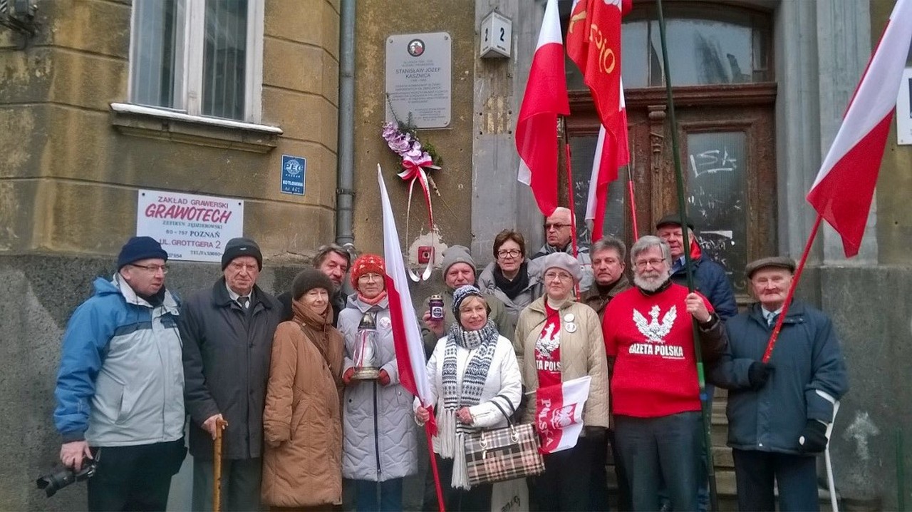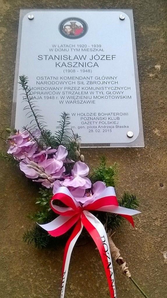 Rok temu, staraniem Poznańskiego Klubu Gazety Polskiej w Poznaniu, na starej kamienicy przy ul. Grottgera 2, w której mieszkał zamordowany przez komunistów ostatni Komendant Główny Narodowych Sił Zbrojnych płk Stanisław Kasznica, powieszona została pamiątkowa tablica. W dniu 1 marca, w ramach obchodów Narodowego Dnia Pamięci Żołnierzy Wyklętych, pod tablicą zebrała się grupa klubowiczów dla uczczenia pamięci płk. Kasznicy i wszystkich pomordowanych ofiar komunistycznego terroru.