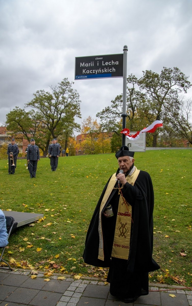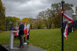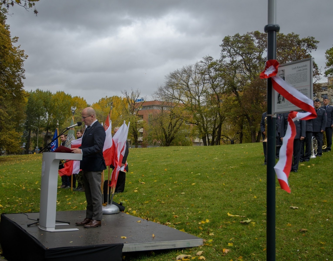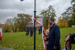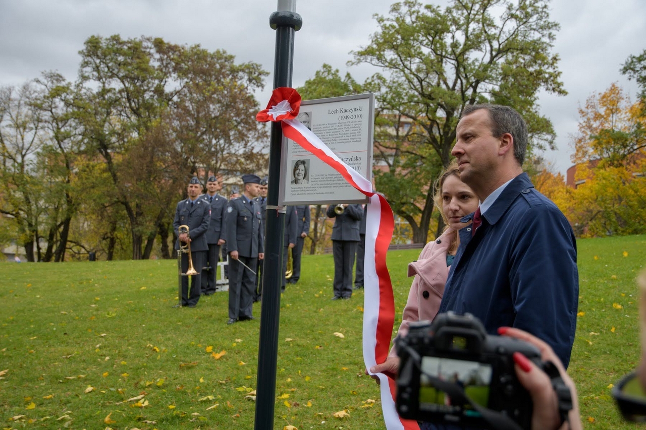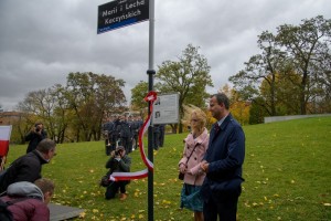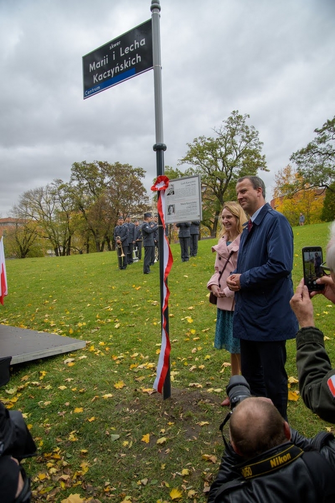 Odsłonięcia tablicy z patronami skweru dokonała inicjatorka uchwały radna poznańskiego PIS Klaudia Strzelecka i wojewoda wielkopolski Michał Zieliński.