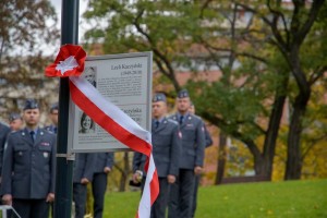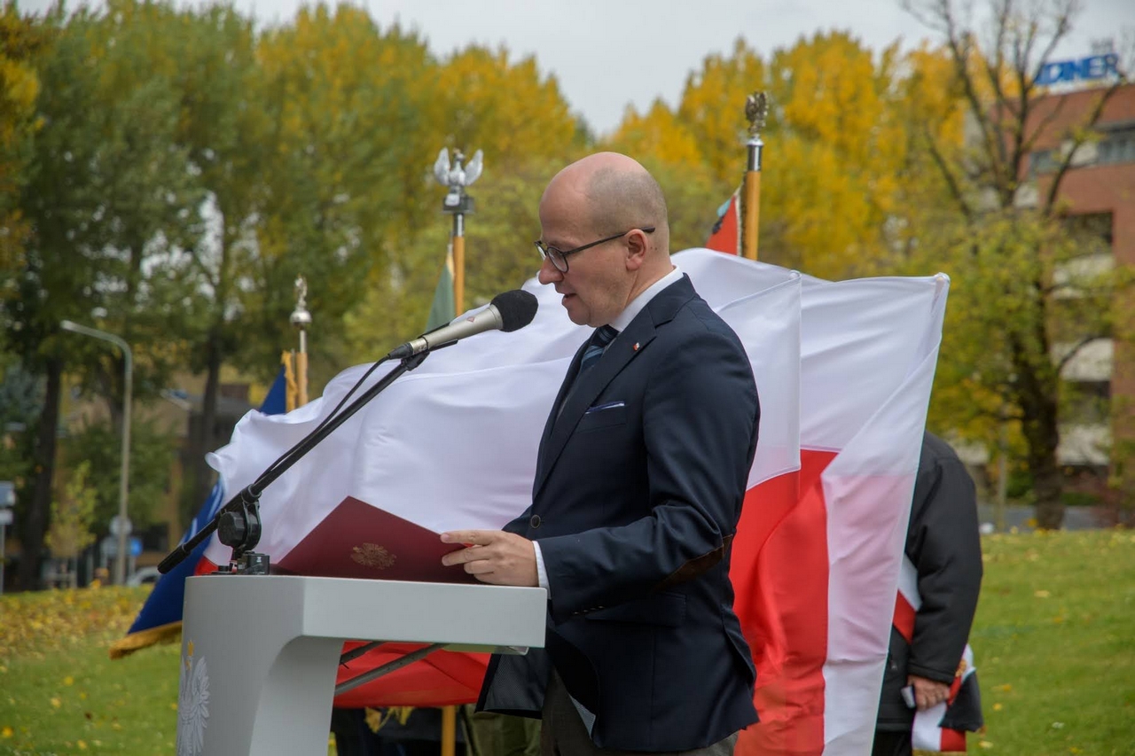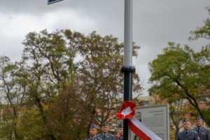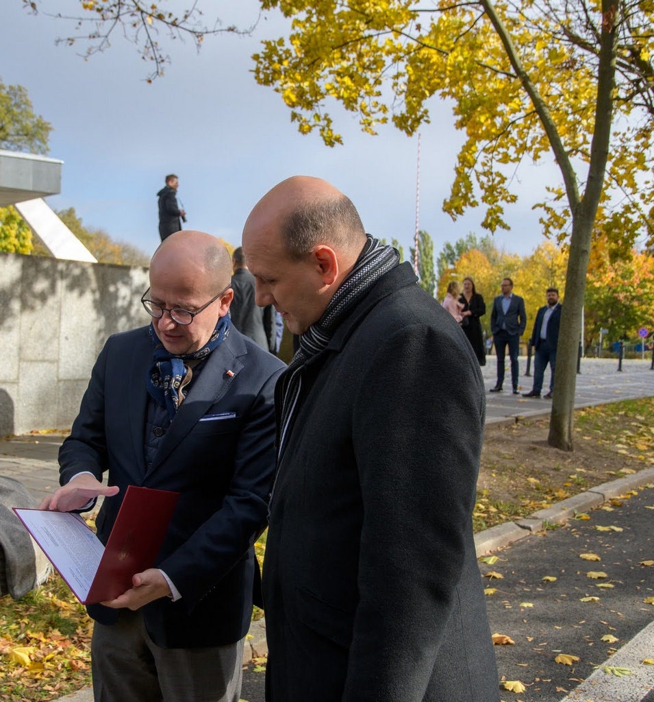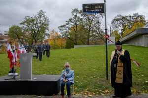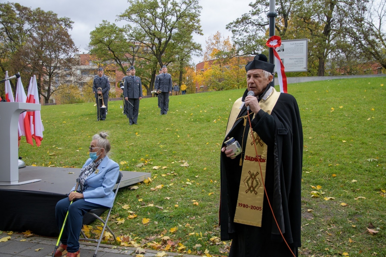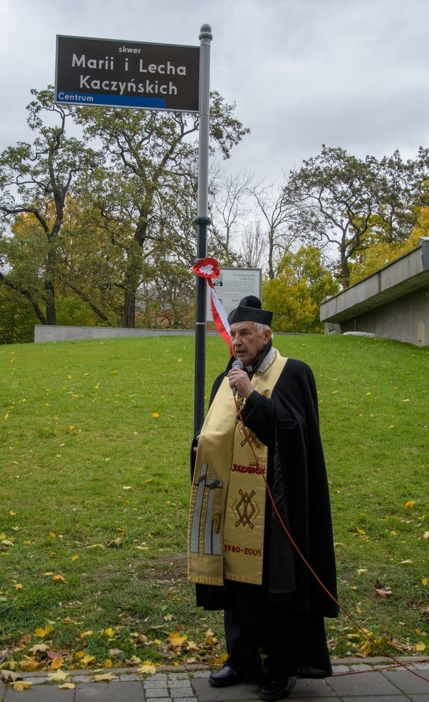 Odsłonięcia tablicy z patronami skweru dokonała inicjatorka uchwały radna poznańskiego PIS Klaudia Strzelecka i wojewoda wielkopolski Michał Zieliński.
