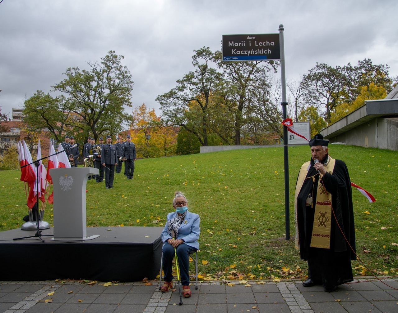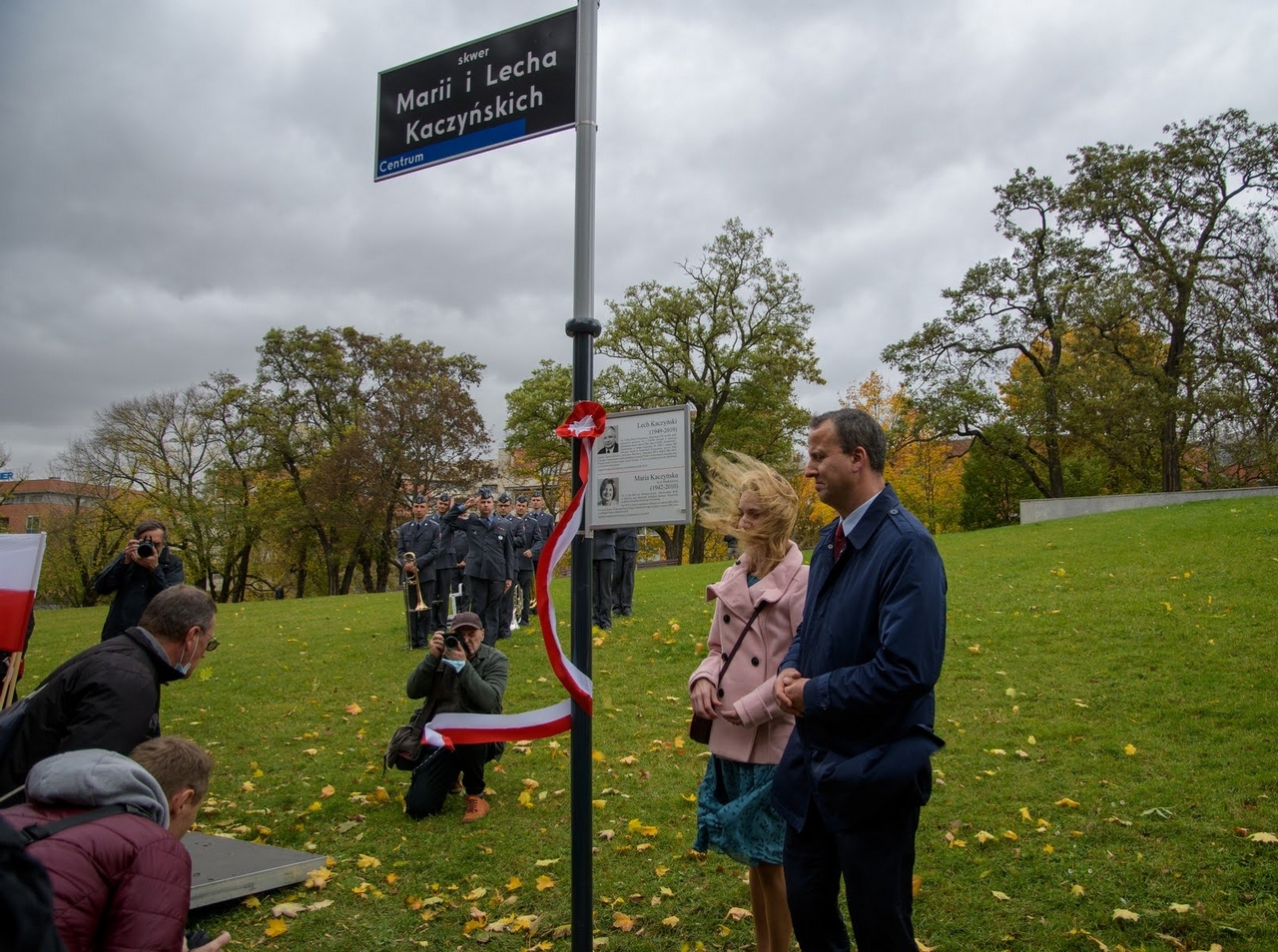 W czwartek 21 października 2021 o godz. 14:00 w cieniu Pomnika Armii Poznań naprzeciw Cmentarza zasłużonych, gdzie kończy się wzgórze, na którym stoi kościół Św. Wojciecha zwany Poznańską Skałką, w którym spoczywają doczesne szczątki zasłużonych Polaków, jak między innymi: serce Jana Henryka Dąbrowskiego – twórcy Legionów Polskich we Włoszech, Józefa Wybickiego – twórcy słów hymnu narodowego, Feliksa Nowowiejskiego, który napisał melodie do Roty Marii Konopnickiej, położony jest skwer zwany od teraz Skwerem Marii i Lecha Kaczyńskich.