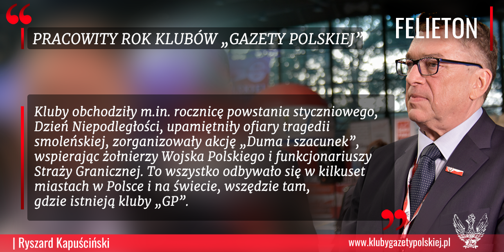 Rok 2021 był bardzo pracowity dla 490 klubów „GP” działających w Polsce i poza jej granicami. Kluby, pomimo pandemii, zainicjowały setki wydarzeń, np. spotkania z ważnymi ludźmi kultury, nauki, polityki. Nagrodą Człowiek Roku Klubów „GP” 2020 uhonorowany został prezes PiS Jarosław Kaczyński. Kluby „GP”, tak jak w poprzednich latach, zorganizowały Wielki Wyjazd na Węgry. Odbył się XVI Zjazd Klubów „GP”, podczas którego nastąpiła ceremonia wręczenia Tomaszowi Sakiewiczowi i Ryszardowi Kapuścińskiemu odznaczeń – Krzyży Kawalerskich Orderu Węgierskiego Zasługi – przyznanych im przez prezydenta Węgier Jánosa Ádera. Miał miejsce VIII Zjazd Klubów „GP” z USA i Kanady. Przed siedzibą Trybunału Konstytucyjnego w Warszawie zorganizowano manifestację „Po stronie Polski”, której celem było poparcie sędziów TK wobec skandalicznych działań TSUE. Kluby obchodziły m.in. rocznicę powstania styczniowego, Dzień Niepodległości, upamiętniły ofiary tragedii smoleńskiej, zorganizowały akcję „Duma i szacunek”, wspierając żołnierzy Wojska Polskiego i funkcjonariuszy Straży Granicznej. To wszystko odbywało się w kilkuset miastach w Polsce i na świecie, wszędzie tam, gdzie istnieją kluby „GP”.