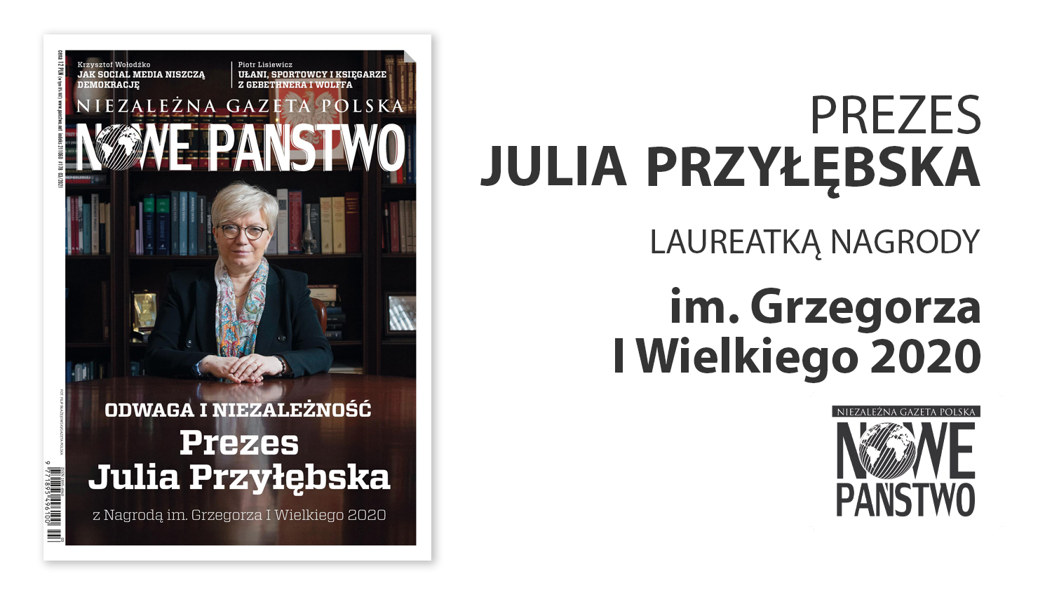 Do znamienitego grona naszych Laureatów dołącza właśnie Pani Sędzia JULIA PRZYŁĘBSKA. Tym wyróżnieniem chcemy docenić odwagę Pani Prezes (ale również innych sędziów Trybunału Konstytucyjnego), z jaką stoi Ona na straży porządku prawnego Rzeczypospolitej. W sposób szczególny pragniemy podkreślić znaczenie orzeczenia zakazującego tzw. aborcji eugenicznej – uzasadnia wybór red. Katarzyna Gójska, redaktor naczelna miesięcznika „Nowe Państwo”.