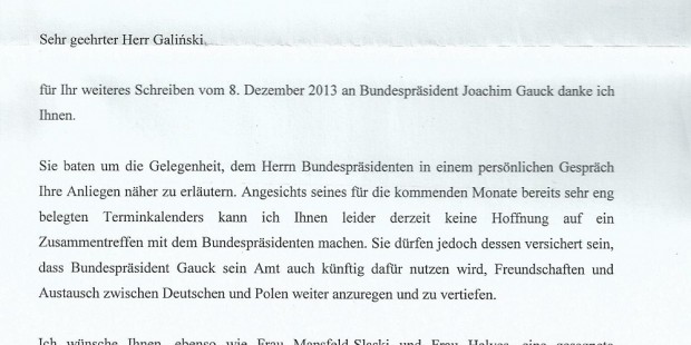 Odpowiedź z biura pana Prezydenta RFN Joachima Gaucka – CZYTAJ i CZYTAJ