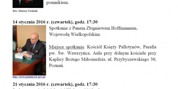 Poznań – ZMIANA GODZINY 69 miesięcznica Tragedii Smoleńskiej, 10 stycznia, g. 13, Msza święta w Kościele pw. Najświętszego Zbawiciela, ul. Fredry 11, po mszy przemarsz uczestników pod pomnik Ofiar Katynia i Sybiru, a następnie modlitwa, apel i złożenie kwiatów pod pomnikiem.
