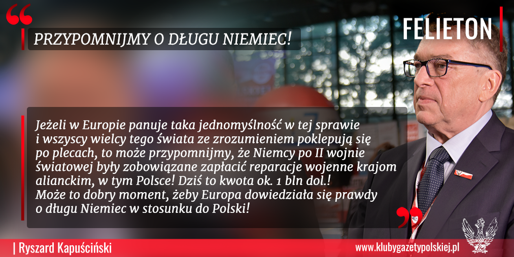 Aby odbudować Ukrainę, potrzebujemy 5 mld dol. miesięcznie – powiedział prezydent Wołodymyr Zełenski w Davos. Odbudowa tego kraju stała się głównym tematem spotkania liderów ze świata polityki, gospodarki i biznesu. – Musimy rozpocząć prace nad odbudową, przynajmniej na obszarach kontrolowanych przez Ukrainę – mówił Borge Brende, prezes Światowego Forum Ekonomicznego. – Pieniądze na odbudowę powinny przede wszystkim pochodzić z reparacji wojennych od Rosji, bo to Rosja niszczy Ukrainę, burzy budynki mieszkalne, niszczy infrastrukturę i to Rosja powinna zapłacić za jej odbudowę – powiedział w Davos prezydent Andrzej Duda. Komisja Europejska popiera takie stanowisko i ma przedstawić propozycje wykorzystania na ten cel m.in. zamrożonych środków należących do rosyjskich oligarchów. Jeżeli w Europie panuje taka jednomyślność w tej sprawie i wszyscy wielcy tego świata ze zrozumieniem poklepują się po plecach, to może przypomnijmy, że Niemcy po II wojnie światowej były zobowiązane zapłacić reparacje wojenne krajom alianckim, w tym Polsce! Dziś to kwota ok. 1 bln dol.! Może to dobry moment, żeby Europa dowiedziała się prawdy o długu Niemiec w stosunku do Polski!