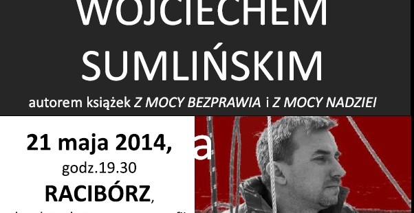 Racibórz – spotkanie z dziennikarzem śledczym Wojciechem Sumlińskim autorem książek Z MOCY  BEZPRAWIA i Z MOCY NADZIEI. 21 maja, g. 19.30,w domu katechetycznym przy parafii NSPJ ul. Warszawska 29.