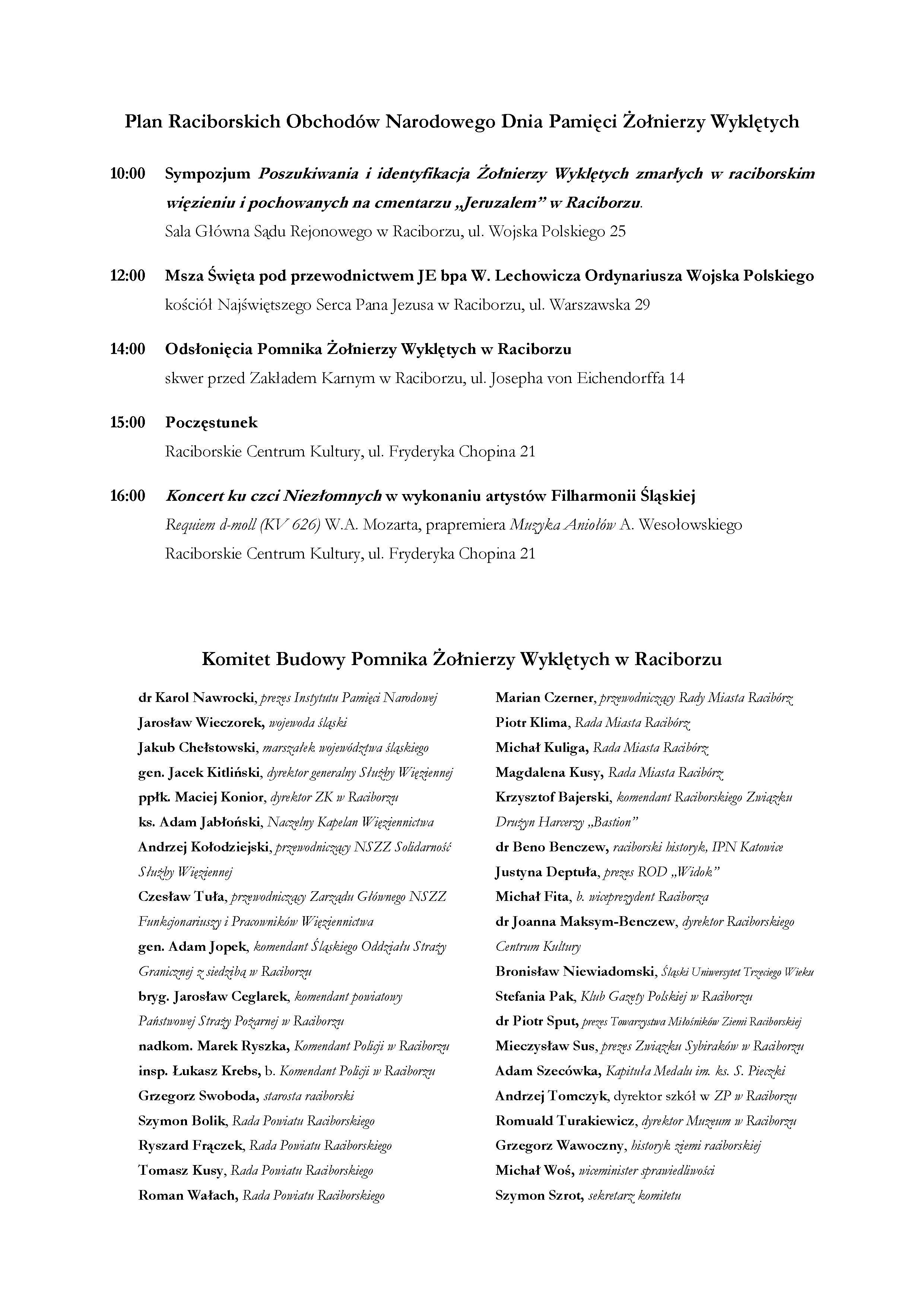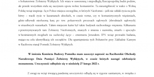 Zaproszenie na Raciborskie Obchody Narodowego Dnia Pamięci Żołnierzy Wyklętych.