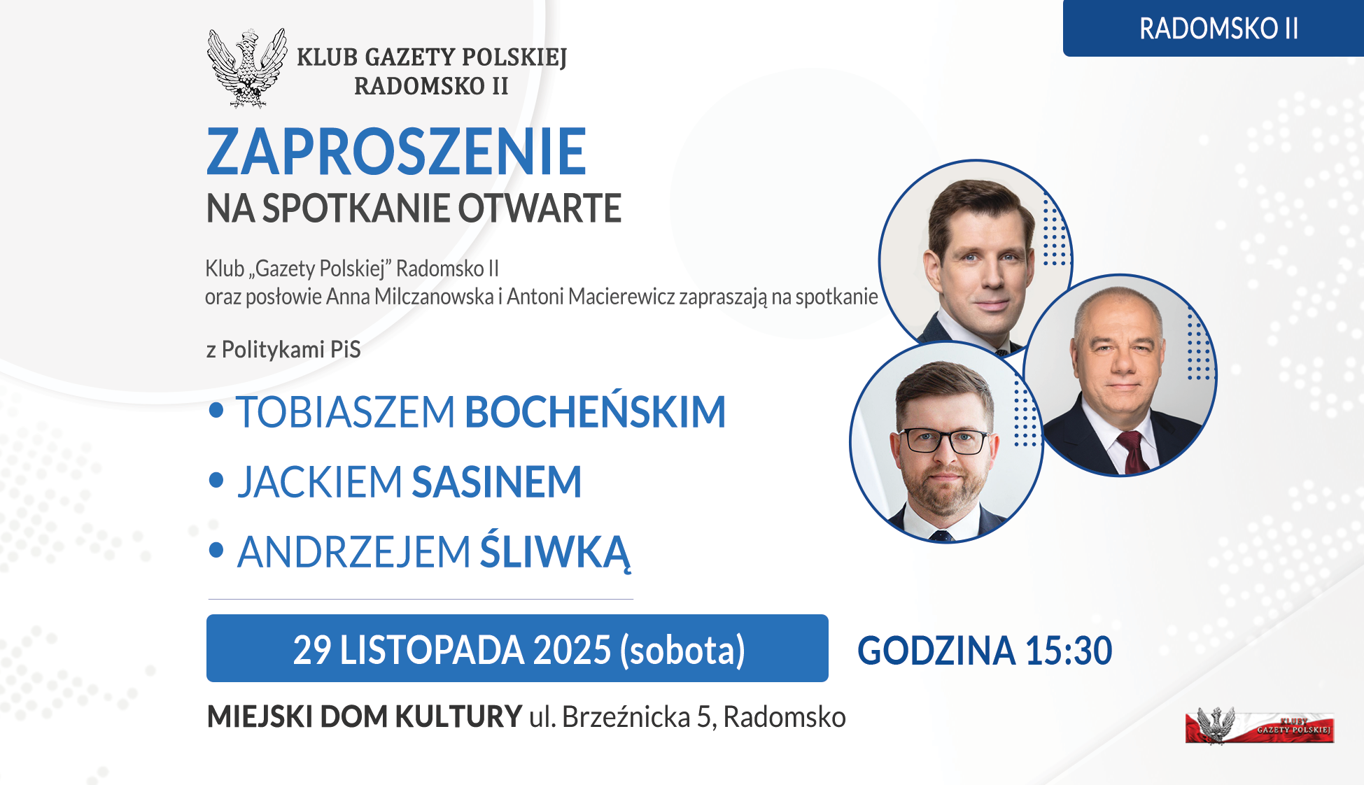 Klub GP Radomsko II im. generała Stanisława Sojczynskiego Warszyca oraz posłowie Anna Milczanowska i Antoni Macierewicz