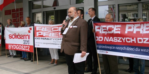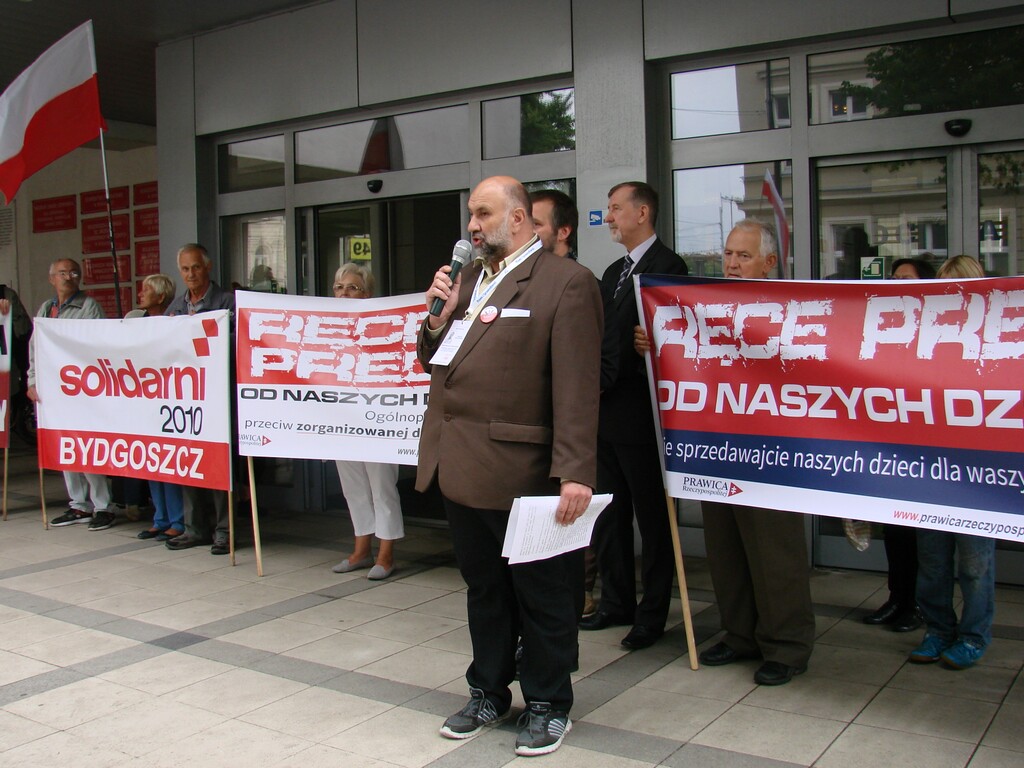 Pod Kuratorium Oświaty i Wychowania w Bydgoszczy podobnie jak w wielu innych miastach w Polsce odbył się protest przeciwko planom deprawacji dzieci przez MEN. Jako pierwszy głos zabrał kandydat na prezydenta Bydgoszczy, radny Marek Gralik: Ministerstwo Edukacji Narodowej wręcz zachęca wychowawców seksualnych, tzw. seksedukatorów, aby wchodzili do szkoły, a szkoły, żeby były dla nich otwarte. Inny przedstawiciel rządu idzie jeszcze dalej. Pani Małgorzata Fuszara, która jest pełnomocnikiem rządu ds. równego traktowania domaga się, żeby szkoły były otwarte dla seksedukatorów. Ona wręcz domaga się, żeby do tych szkół można było wprowadzać edukatorów homoseksualnych i transseksualnych. Nasz protest jest kierowany do rządu. Ale ten nowy rok szkolny mógłby zacząć się spokojnie, normalnie. Bo przecież mamy w programach szkół przedmiot “Wychowanie do życia w rodzinie”. Następnie radny wskazywał na dobre wykształcenie osób prowadzących ten przedmiot. Zasugerował, że rząd najwidoczniej nie ufa własnej kadrze nauczycielskiej.