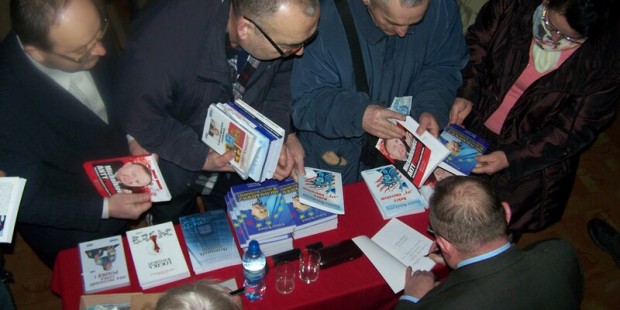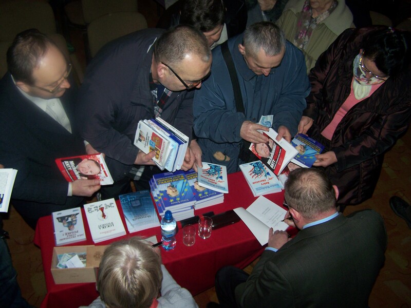Po prelekcji Pan Redaktor Stanisław Michalkiewicz odpowiadał na liczne pytania zadawane przez uczestników spotkania, a po spotkaniu udzielił licznie autografy w swoich książkach.