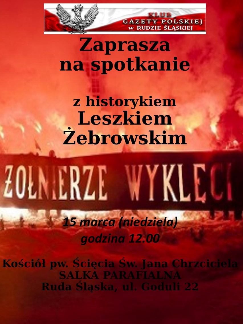 Ruda Śląska – spotkanie z historykiem Leszkiem Żebrowskim, 15 marca, g. 12, Kościół pw. Ścięcia św. Jana Chrzciciela, salka parafialna, ul. Godulla 22.