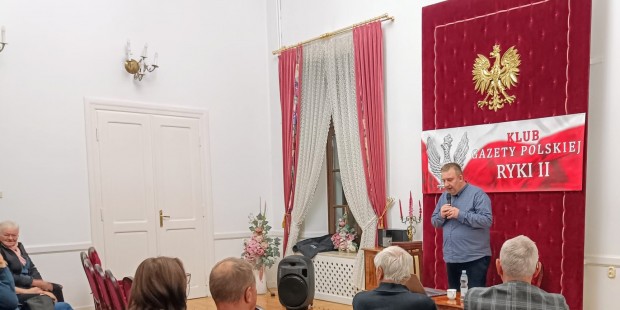 W sali Centrum Kultury i Sportu „Pałacyk” w Rykach odbyło się otwarte spotkanie Klubu „Gazety Polskiej” Ryki II z dziennikarzem „Gazety Polskiej” i „Gazety Polskiej Codziennie” – Jackiem Lizniewiczem.