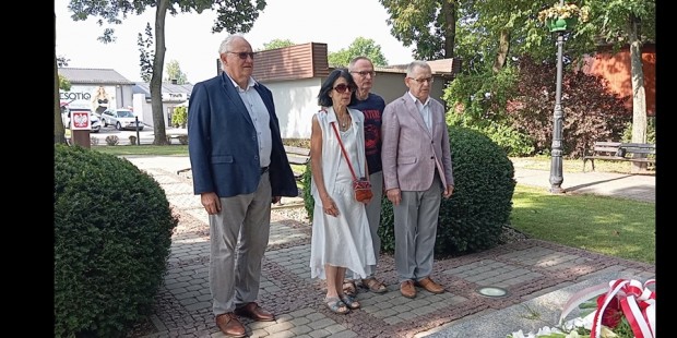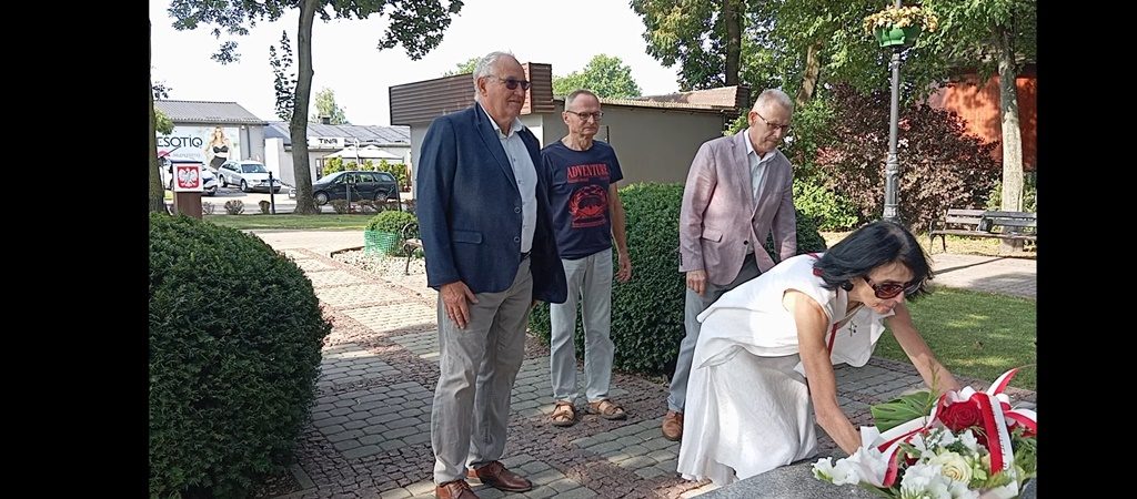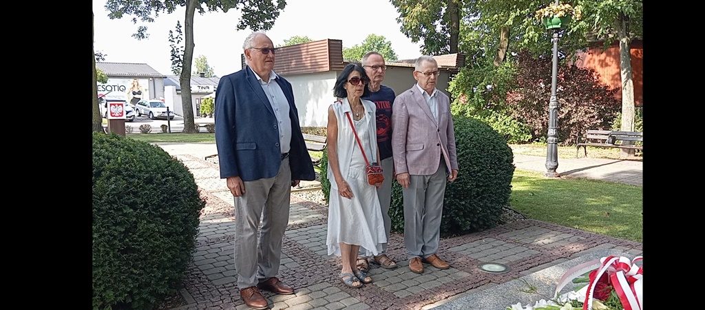 Rypin 15.08.2024 r., Klub „Gazety Polskiej” Rypin składa wiązankę kwiatów u stóp pomnika marszałka Józefa Piłsudskiego, twórcy niepodległej Polski.