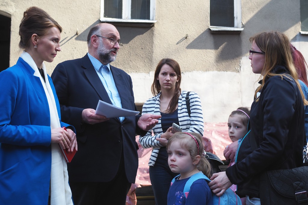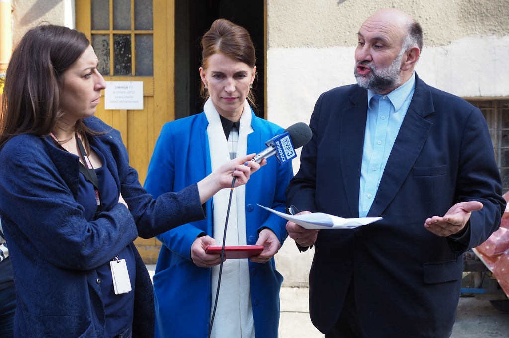 Lokatorzy posesji nr, 18 przy ul. 3 maja w Bydgoszczy dnia 25 września 2016r. Otrzymali nakaz opuszczenia nieruchomości w terminie natychmiastowym . W decyzji wydanej przez Powiatowego Inspektora Budowlanego dla Miasta Bydgoszczy czytamy między innymi „ w efekcie dokonanych czynności ustalono, że stan techniczny budynku jest bardzo zły i stwarza realne zagrożenie wystąpienia zdarzenia katastrofy budowlanej” oraz „ występuje sytuacja bezpośredniego zagrożenia bezpieczeństwa życia i zdrowia”. Inspektor nakazuje też „zabezpieczenie budynku (…) poprzez zlikwidowanie ( zamurowanie) zamurowanie otworów okiennych i drzwiowych. Na drzwiach budynku administrator umieścił tabliczkę (na zdjęciu) Uwaga! Budynek grozi zawaleniem, Zakaz przebywania. Mimo upływu czas budynek ten nadal zamieszkuje 5 rodzin (jedna wyprowadziła dwa dni temu). Władze miasta (koalicja PO – SLD) zaproponowały lokatorom pobyt czasowy w Schronisku Młodzieżowym ci jednak odmawiają albowiem nie mogą zabrać tam ze sobą swojego dobytku. Wśród lokatorów zobowiązanych do natychmiastowego opuszczenia posesji jest 5 osobowa rodzin : mama, tata, trójka dzieci czwarte niedługo przyjdzie na świat. Poprosili miasto o przydział lokalu socjalnego, spełniają kryterium dochodowe ale UWAGA mieszkanie, które mają w trybie natychmiastowym opuścić z uwagi na groźbę zawalenia, ma za duży metraż, z tej uwagi odmówiono przydziału, proponując Pani z dziećmi zamieszkanie w domu dla bezdomnych matek, a jej mężowi w domu dla bezdomnych mężczyzn. Dnia 5 kwietnia radni Krystian Frelichowski (Klub Gazety Polskiej) i Grażyna Szabelska zwołali pod grożącym zawaleniem budynkiem konferencje prasową podczas, której wraz z mieszkańcami apelowali do Prezydenta Bydgoszczy o przydział mieszkań zastępczych dla poszkodowanych. Tyko do 10 listopada 2015r. Mimo naszych protestów,wystawiliście 39 pustostanów na sprzedaż – przypominał radny, – a także kamienice przy ulicy Jagiellońskiej 2, z 13 lokalami mieszkalnymi i 15 użytkowymi, z których przynajmniej cześć można by zaadoptować na mieszkania. Podczas kolejnych sesji Rady Miasta, także ostatniej podjęliście decyzje o sprzedaży kolejnych pustostanów. A teraz mówicie ofiarom katastrofy budowlanej, że mają zamieszkać w schroniskach dla bezdomnych. Tak się nie godzi – zakończył Frelichowski. Tyle razy przekonywałam, prosiłam – wspierała kolegę radna Grażyna Szabelska, – żeby nie wyzbywać się mieszkań chociażby z myślą o takich sytuacjach jak dzisiejsza. Rachunek ekonomiczny dla władz miasta był ważniejszy od dobra mieszkańców. Przecież ci tutaj ludzie, nie mając gdzie się podziać, każdego dnia ryzykują swoim życiem.