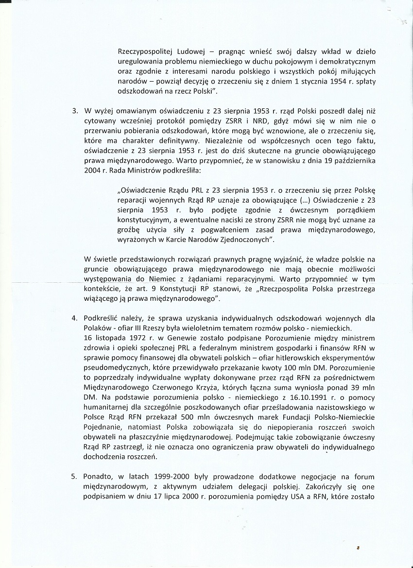 Bardzo dziękujemy Kancelarii Naszego Pana Prezydenta Andrzeja Dudy za pomoc i uzyskanie stanowiska rządu PO-PSL (MSZ)w sprawie odszkodowań od Niemiec dla polskich ofiar II wojny światowej.