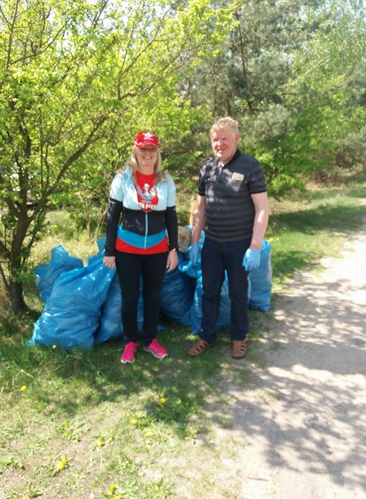 Cały kontener śmieci uzbieraliśmy na poligonie. Dziękujemy wszystkim klubowiczom oraz Panu Posłowi Grzegorzowi Wojciechowskiemu za udział w sprzątaniu. Jak widać na zdjęciu, piesek też zbierał. Podziękowania należą się ZUM w Skierniewicach za zabezpieczenie nam rękawic, worków oraz odbiór odpadów. Po pracy było pieczenie kiełbasek i ciasto koleżanki Dorotki. Reasumując, warto było i mamy nadzieję, że wspólnie zadbamy o porządek na tym pięknym terenie naszego miasta.