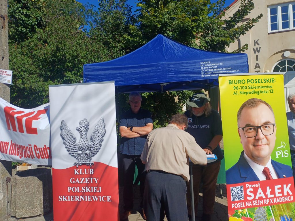 Klub Gazety Polskiej w Skierniewicach podczas dwudniowego Skierniewickiego Święta Kwiatów Owoców I Warzyw zbierał podpisy pod wnioskiem o referendum przeciw nielegalnej imigracji.