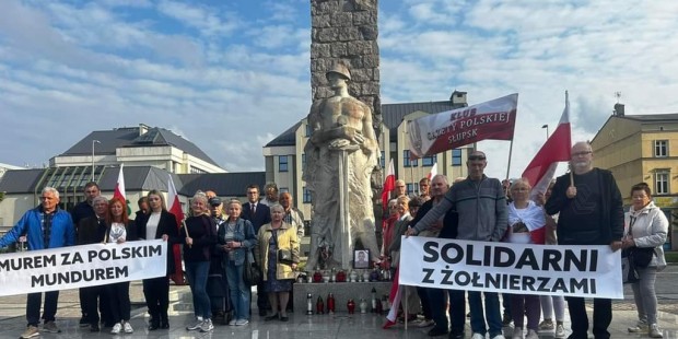Klub Gazety Polskiej w Słupsku zebrał się dzisiaj pod pomnikiem Żołnierza Polskiego żeby uczcić pamięć zabitego żołnierza Mateusza Sitka. Solidaryzowaliśmy się Polskim Żołnierzami, wyrażając swój sprzeciw wobec haniebnemu aresztowaniu za oddanie strzałów ostrzegawczych.