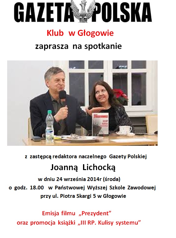 Głogów – spotkanie 24 września, g. 18, Państwowa Wyższa Szkoła Zawodowa w Głogowie , ul. P. Skargi 5.