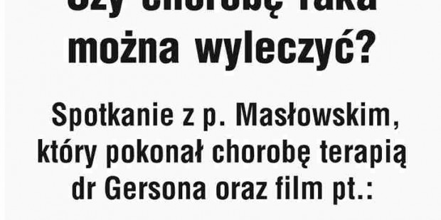 Śrem – spotkanie p. Masłowskim pt. „ Czy chorobę raka można wyleczyć?”, 29 marca, g. 17,