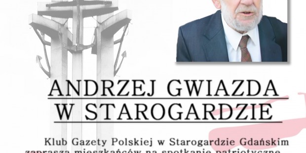 Starogard Gdański – spotkanie z Andrzejem Gwiazdą, prawdziwą legendą Solidarności pt. „ Od Solidarności do teraźniejszości”, 22 listopada, g. 18, sala kina Sokół.