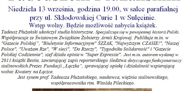Niedziela 13 września, godzina 19.00, w salce parafialnej przy ul. Skłodowskiej Curie 1 w Sulęcinie.