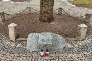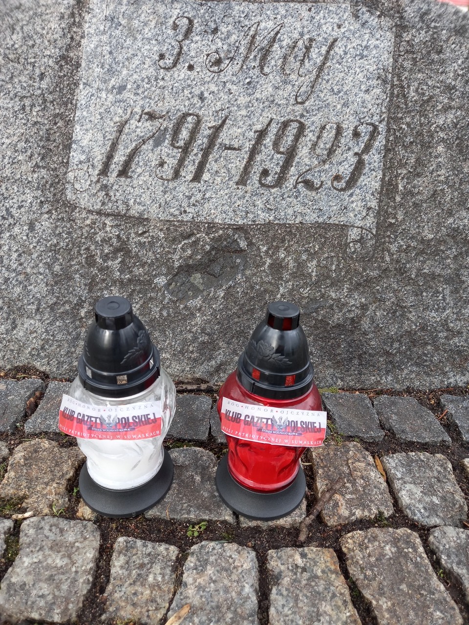 Najpierw zapaliliśmy biało- czerwone znicze z naszym patriotycznym logo: „Bóg – Honor – Ojczyzna Klub Gazety Polskiej – Myśli Patriotycznej w Suwałkach Strefa Wolnego Słowa” pod Dębem Wolności – w miejscu upamiętnienia 10.04.2010 r.