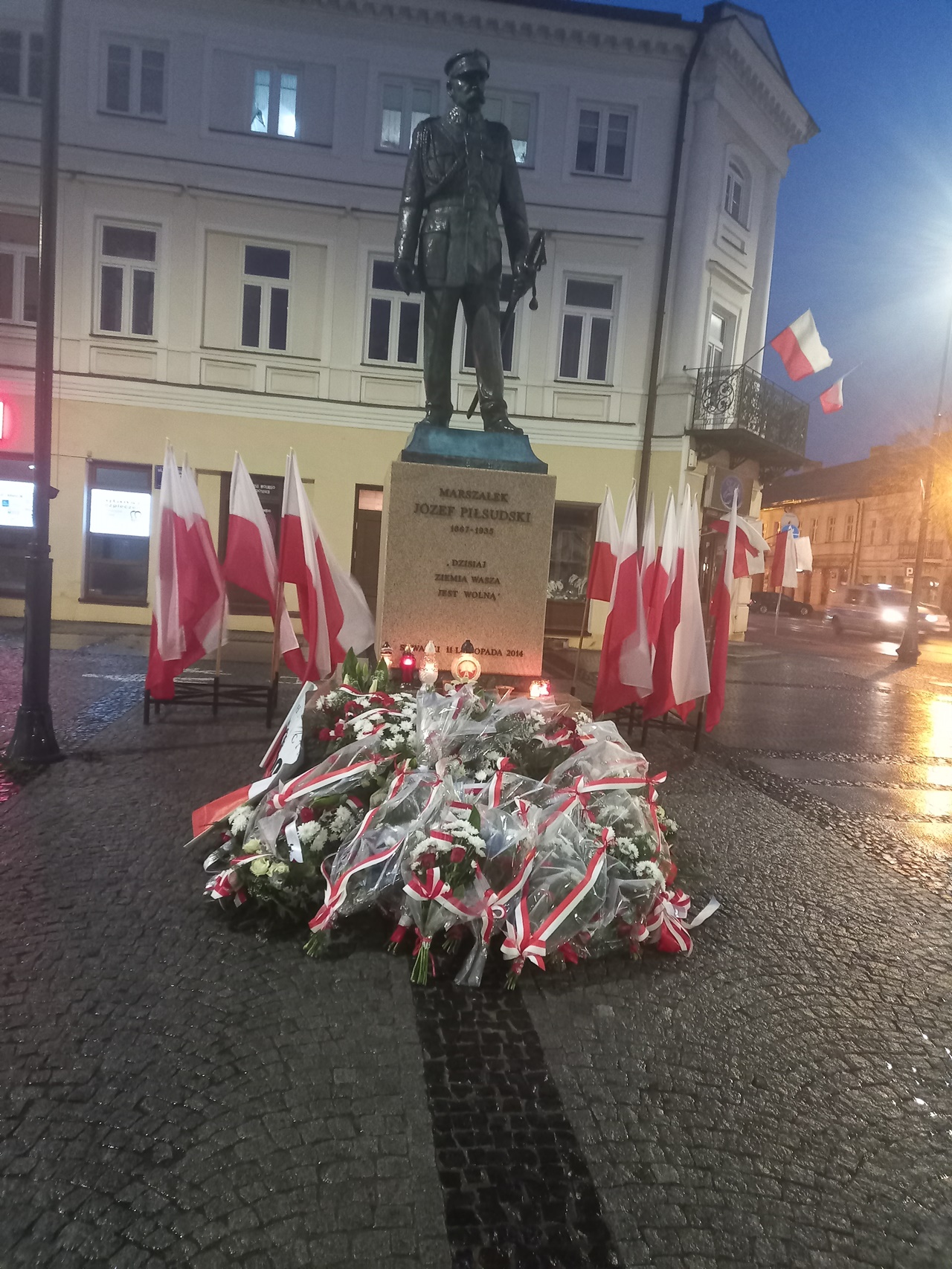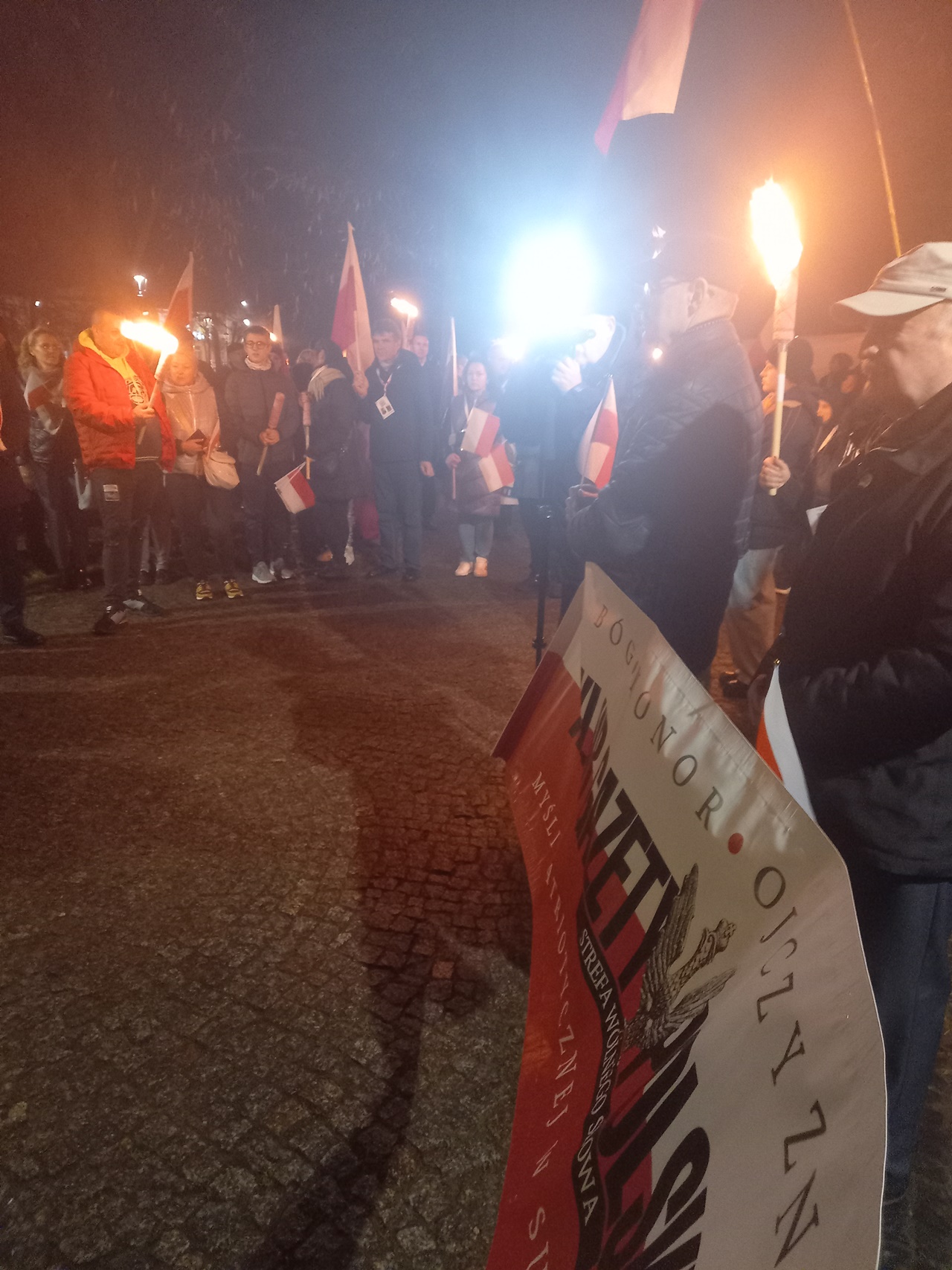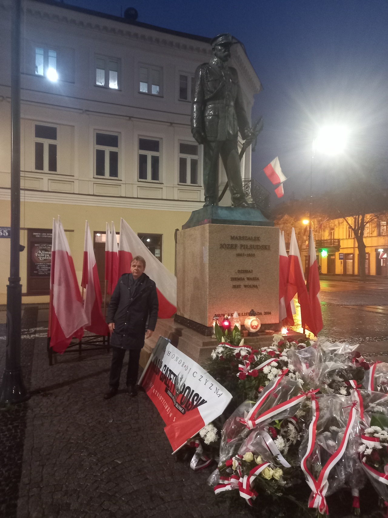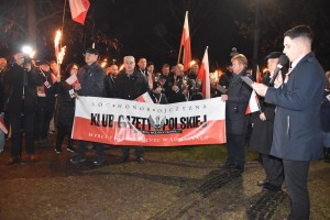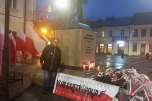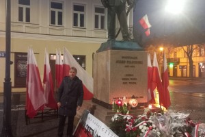 Najpierw odbyła się Msza Św. w konkatedrze św. Aleksandra. Po niej poszliśmy pod pomnik Marszałka Polski Józefa Piłsudskiego – głównego twórcy Niepodległości Polski 11.11.1918 r., gdzie zapaliliśmy biało czerwone znicze z naszym logo: „Bóg- Honor- Ojczyzna Klub Gazety Polskiej- Myśli Patriotycznej w Suwałkach Strefa Wolnego Słowa”.