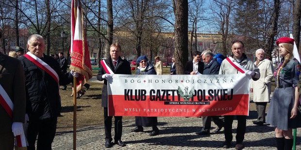 Klub Gazety Polskiej – Myśli Patriotycznej w Suwałkach organizował i brał udział w uroczystych obchodach VIII Rocznicy -96 Miesięcznicy Tragedii Smoleńskiej. Uroczyste obchody miały miejsce w Suwałkach 8 i 10 kwietnia oraz 10.04. w Warszawie i 15 kwietnia w Sejnach. Na tych obchodach zapalaliśmy biało- czerwone znicze i też były składane biało-czerwone kwiaty po Mszach Św. w konkatedrze św. Aleksandra i w bazylice w Sejnach. Robiliśmy to razem z naszym biało – czerwonym banerem: „Bóg – Honor – Ojczyzna Klub Gazety Polskiej – Myśli Patriotycznej w Suwałkach” i z pocztem sztandarowym NSZZ Solidarność Oddział Suwałki z wizerunkiem bł.ks.Jerzego Popiełuszki.