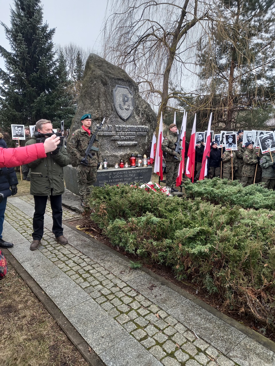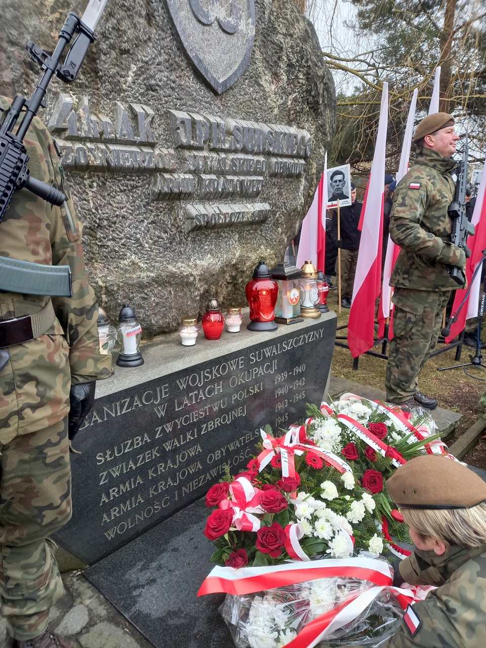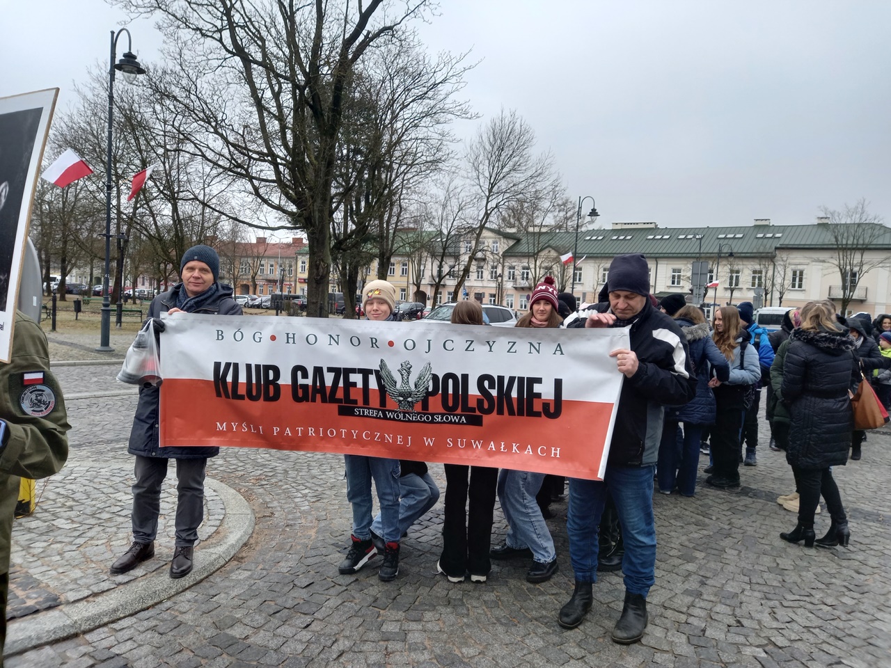 Najpierw była Liturgia Słowa Bożego w konkatedrze św. Aleksandra, a następnie przemarsz ulicami Suwałk pod pomnik Armii Krajowej z naszym patriotycznym banerem i z licznym udziałem młodzieży suwalskich szkół z pocztami sztandarowymi i portretami Żołnierzy Wyklętych. Pod pomnikiem Armii Krajowej zapaliliśmy biało – czerwone znicze z naszym patriotycznym logo: „Bóg – Honor – Ojczyzna Klub Gazety Polskiej – Myśli Patriotycznej w Suwałkach Strefa Wolnego Słowa”.