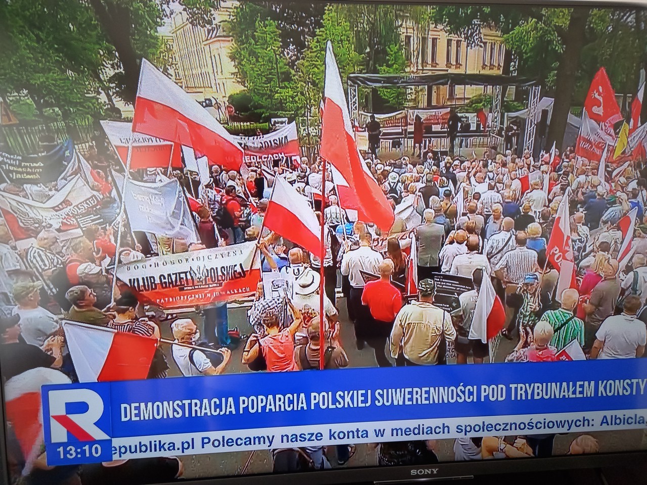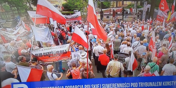 Klub Gazety Polskiej – Myśli Patriotycznej w Suwałkach, razem z Klubem Gazety Polskiej z Olecka, braliśmy udział w manifestacji poparcia Trybunału Konstytucyjnego i wyższości Konstytucji Polski nad prawem unijnym przed Trybunałem Konstytucyjnym 31.07.2021 r. w Warszawie. Było to widać w mediach centralnych.