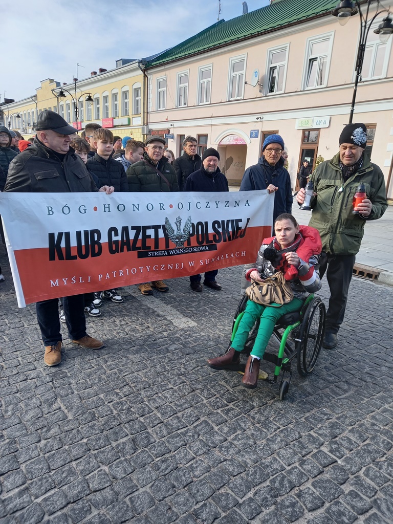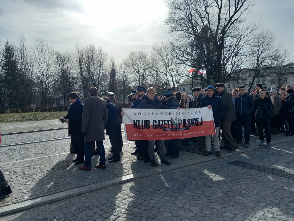 Najpierw była Liturgia Słowa Bożego w konkatedrze św Aleksandra. Następnie pochód licznych mieszkańców w tym młodzieży z Suwałk i z Suwalszczyzny przeszedł pod pomnik żołnierzy Armii Krajowej, gdzie po apelu poległych i salwie honorowej, zapaliliśmy biało – czerwone znicze z naszym patriotycznym logo: Bóg-Honor-Ojczyzna Klub Gazety Polskiej – Myśli Patriotycznej w Suwałkach Strefa Wolnego Słowa. Zbrodnia na Żołnierzach Niezłomnych była dokonywana przez antyludzki komunizm – najbardziej zbrodniczy system w historii świata, którego przedstawiciele nadal są europosłami w Parlamencie Europejskim.
