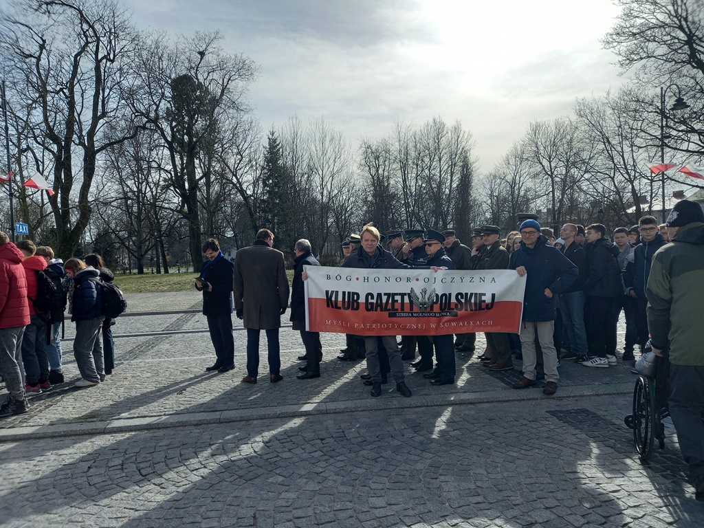 Klub Gazety Polskiej – Myśli Patriotycznej w Suwałkach z licznymi mieszkańcami i młodzieżą suwalskich szkół brał aktywny udział w obchodach Narodowego Dnia Pamięci Żołnierzy Wyklętych – Niezłomnych Bohaterów 1.03.2024 r.