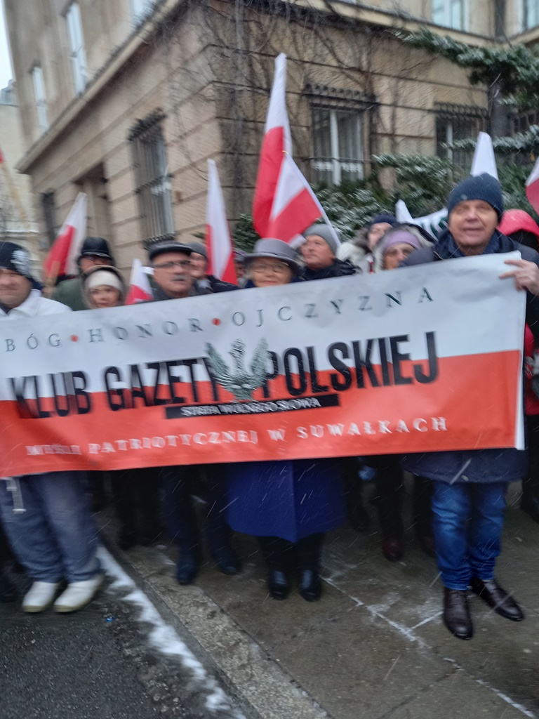 Klub Gazety Polskiej – Myśli Patriotycznej w Suwałkach brał czynny udział w Proteście Wolnych Polaków 11.01.2024 r. w Warszawie. Ponad 300 tys. polskich patriotów zdecydowanie zaprotestowało przeciwko antypolskiemu rządowi Tuska, który zagraża dalszej egzystencji państwa polskiego.
