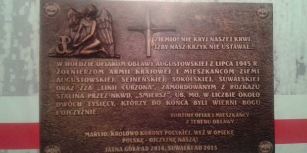Klub Gazety Polskiej – Myśli Patriotycznej w Suwałkach brał czynny udział w patriotycznych obchodach wmurowania tablicy repliki Ofiar Obławy Augustowskiej podczas uroczystej Mszy Św. w konkatedrze św. Aleksandra 4.10.2015 r. Uroczystość zorganizowana została przez Związek Pamięci Ofiar Obławy Augustowskiej 1945 r. Podobna miała miejsce 3.05.2014 r. w Kaplicy Matki Boskiej na Jasnej Górze w Częstochowie, kiedy została wmurowana taka tablica upamiętniająca 2tys. Ofiar ludobójczej zbrodni rosyjskiego NKWD i zdradzieckiego antypolskiego UB, MO i I Praskiego Pułku Piechoty LWP w lipcu 1945 r. Po Mszy Św. miało miejsce Walne Zgromadzenie Związku Pamięci Ofiar Obławy Augustowskiej 1945 r. w Muzeum Okręgowym w Suwałkach, w czasie którego wybrane zostały władze Związku. Przewodniczącym został ponownie ks. prałat Stanisław Wysocki świadek Obławy, którego ojciec i dwie siostry zostały w niej zamordowane. Natomiast członkiem sześcioosobowego Zarządu wybrany został Grzegorz Kubaszewski przewodniczący Klubu Gazety Polskiej – Myśli Patriotycznej w Suwałkach.
