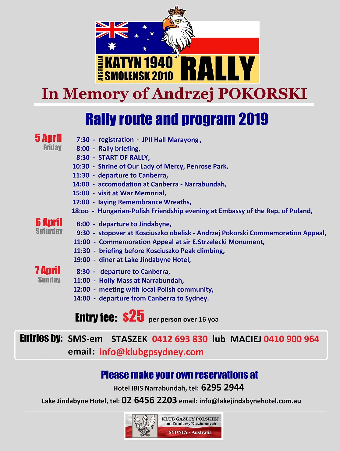 Sydney: Rajd Katyń 1940 Smoleńsk 2010 Australia 5-7 kwietnia 2019
