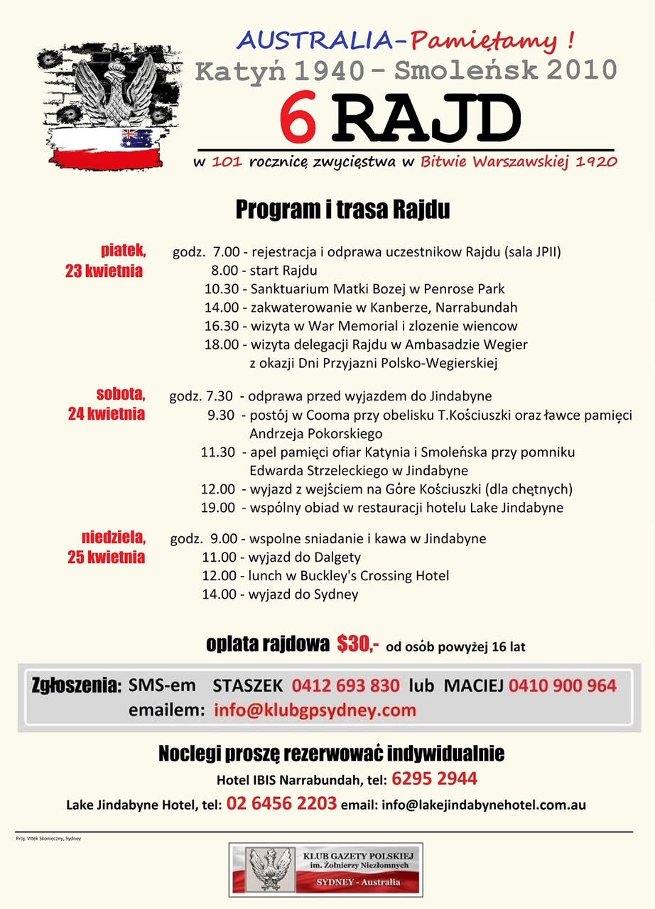 SYDNEY | ZAPROSZENIE 6 Rajd Katyń 1940-Smoleńsk 2010. Australia – Pamiętamy | 23-25 kwietnia