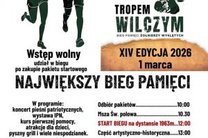 1 marca 2026 r. w wielu miejscowościach w Polsce odbędzie się XIV edycja Biegu Tropem Wilczym – Bieg Pamięci Żołnierzy Wyklętych.
