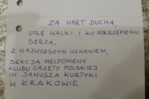 Członkowie Klubu „Gazety Polskiej” w Krakowie wysłał piękne kwiaty i słowa…