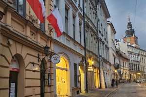Klub Gazety Polskiej Kraków wywiesił biało-czerwoną flagę na znak wsparcia i wyraz szacunku dla służb i żołnierzy broniących granicy.