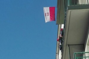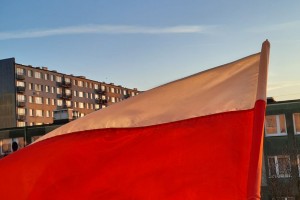 Klub Gazety Polskiej Kraków-Mistrzejowice wywiesił biało-czerwoną flagę na znak wsparcia i wyraz szacunku dla służb i żołnierzy broniących granicy.