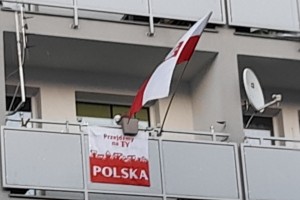 Klub Gazety Polskiej w Nowym Sączu im. ks. Władysława Gurgacza SJ wywiesił biało-czerwoną flagę na znak wsparcia i wyraz szacunku dla służb i żołnierzy broniących granicy.