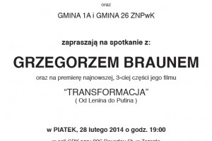 Toronto – spotkanie z Grzegorzem Braunem oraz premierowa projekcja najnowszej, 3-ciej części filmu „TRANSFORMACJA”, 28 lutego, g. 19, w sali SPK przy 206 Beverley St. w Toronto.