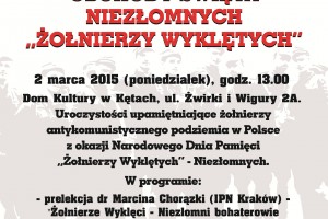 Kęty – obchody Święta Niezłomnych „Żołnierzy Wyklętych”, 2 marca, g. 13, Dom Kultury, ul. Żwirki i Wigury 2A. W programie: prelekcja dr. Marcina Chorązki (IPN Kraków) oraz występ zespołu „Forteca”.